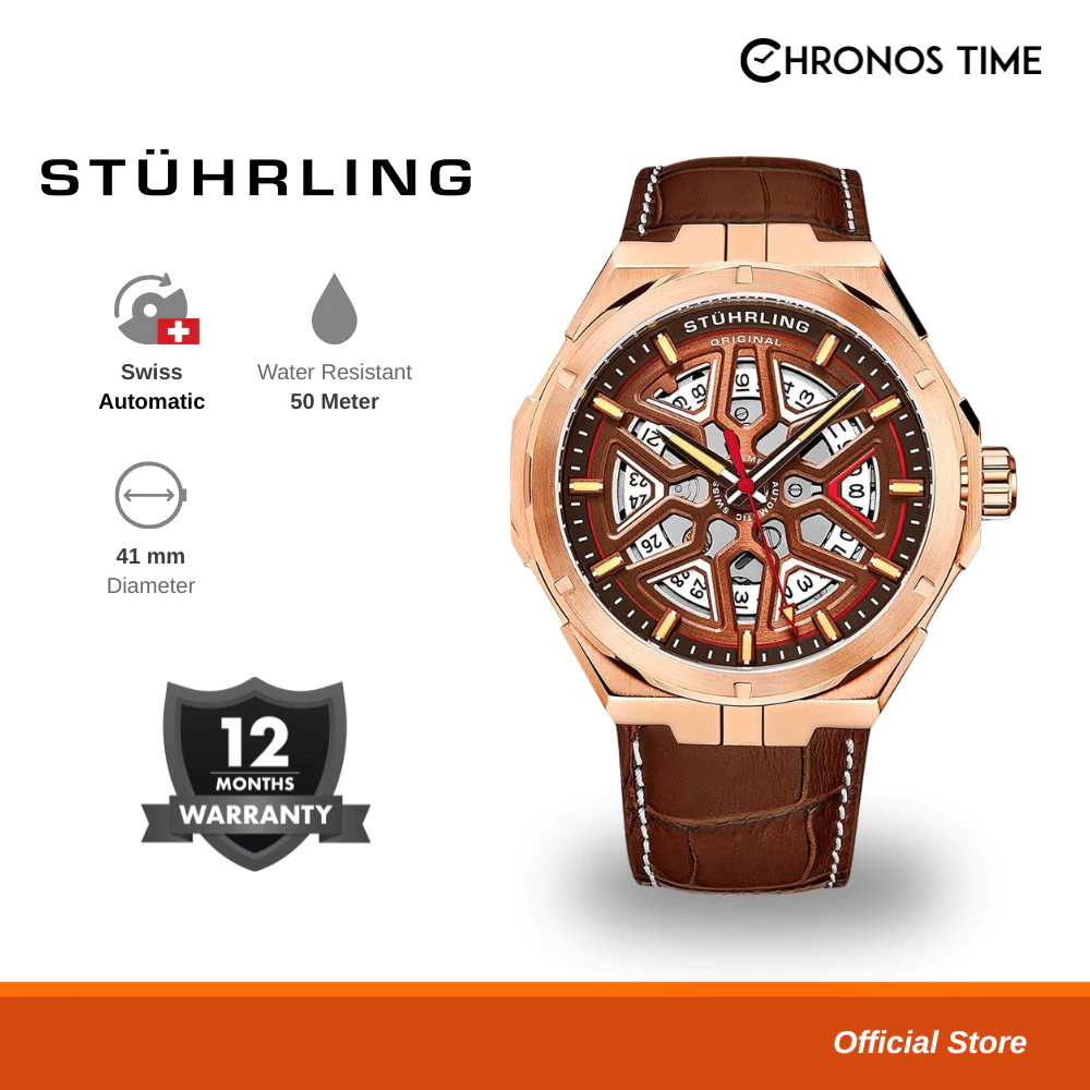 Jam Tangan Pria Automatic Analog Stuhrling Celestial 1017-03 Dual Time Skeleton