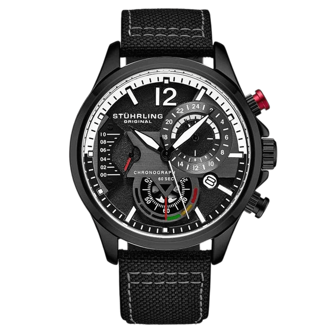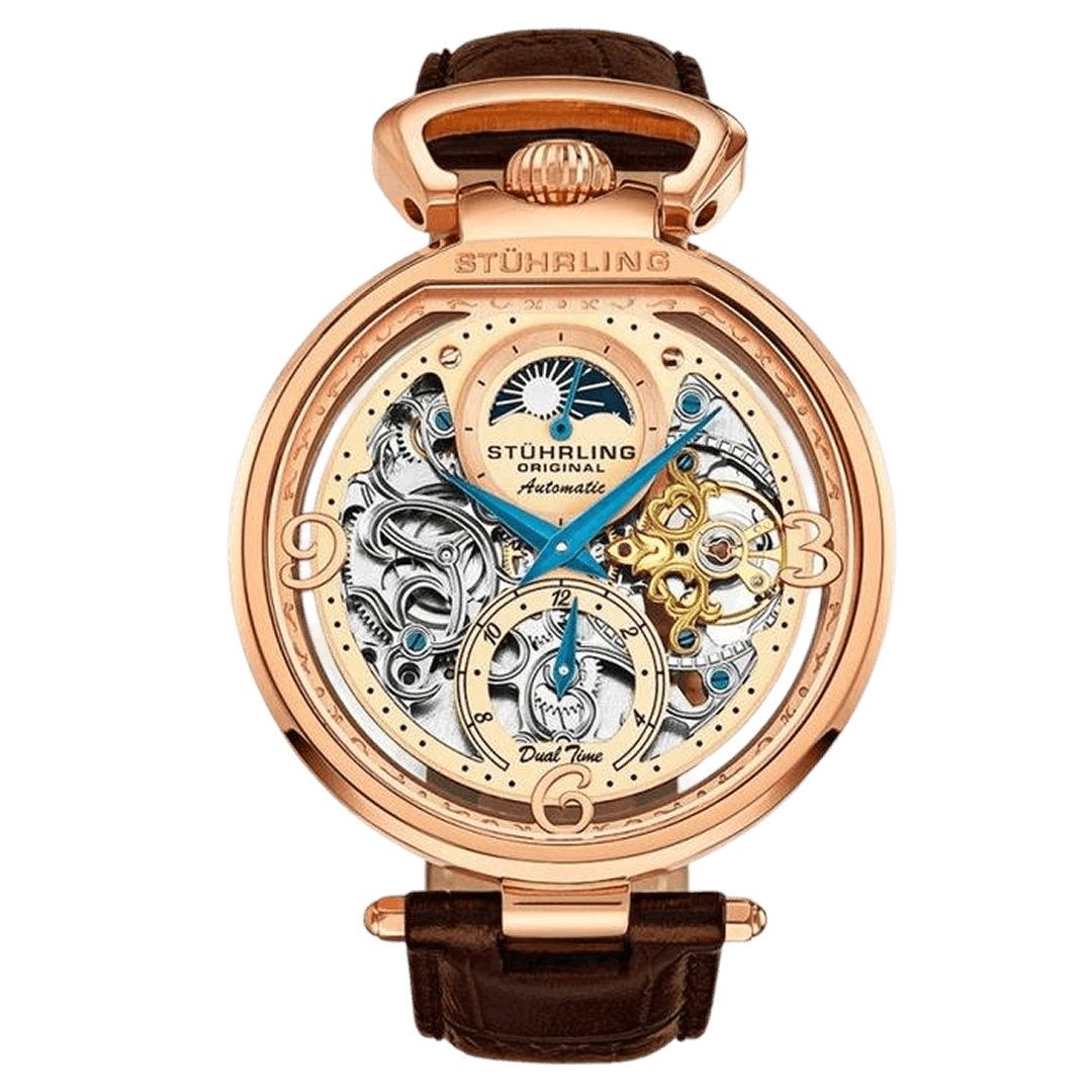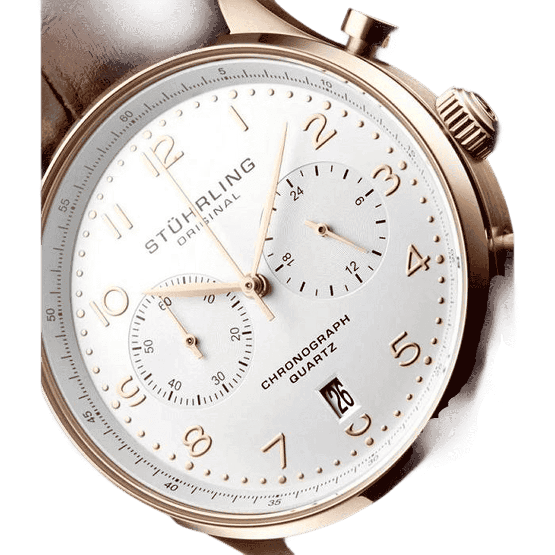 Push/pull serrated-style crown with Stuhrling “S” logo
